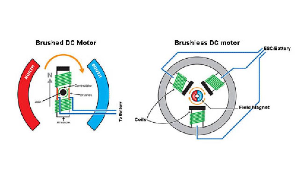 BRUSHED MOTOR: A brushed motor’s brushes are constantly in contact with a moving shaft, causing a lot of friction. This friction, in addition to making noise, produces heat, resulting in wear and tear on the internal components and energy loss due to resistance caused from friction.